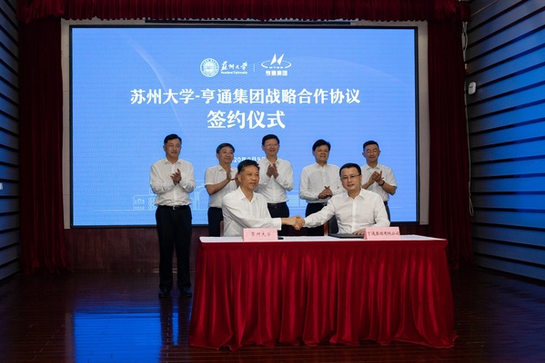 9月9日下午,苏州大学与亨通集团战略合作协议签约仪式在本部学术报告厅举行。苏州市市长李亚平,副市长曹后灵,吴江区区委书记李铭,亨通集团有限公司董事局主席崔根良,我校校领导江涌、熊思东、路建美、杨一心,苏州市人民政府及吴江区相关领导,亨通集团有限公司相关负责人,我校相关职能部门负责人和师生代表参加仪式。仪式由校党委副书记、副校长路建美主持。