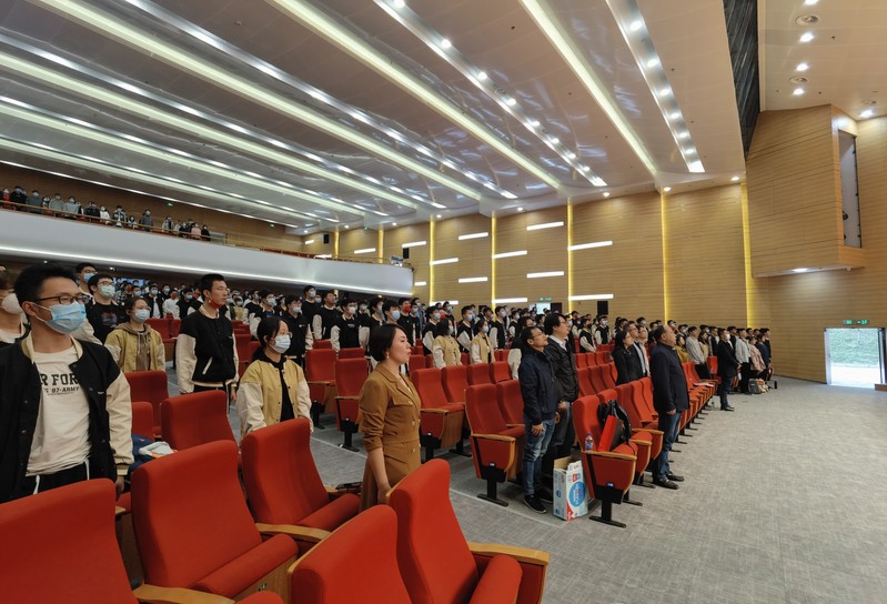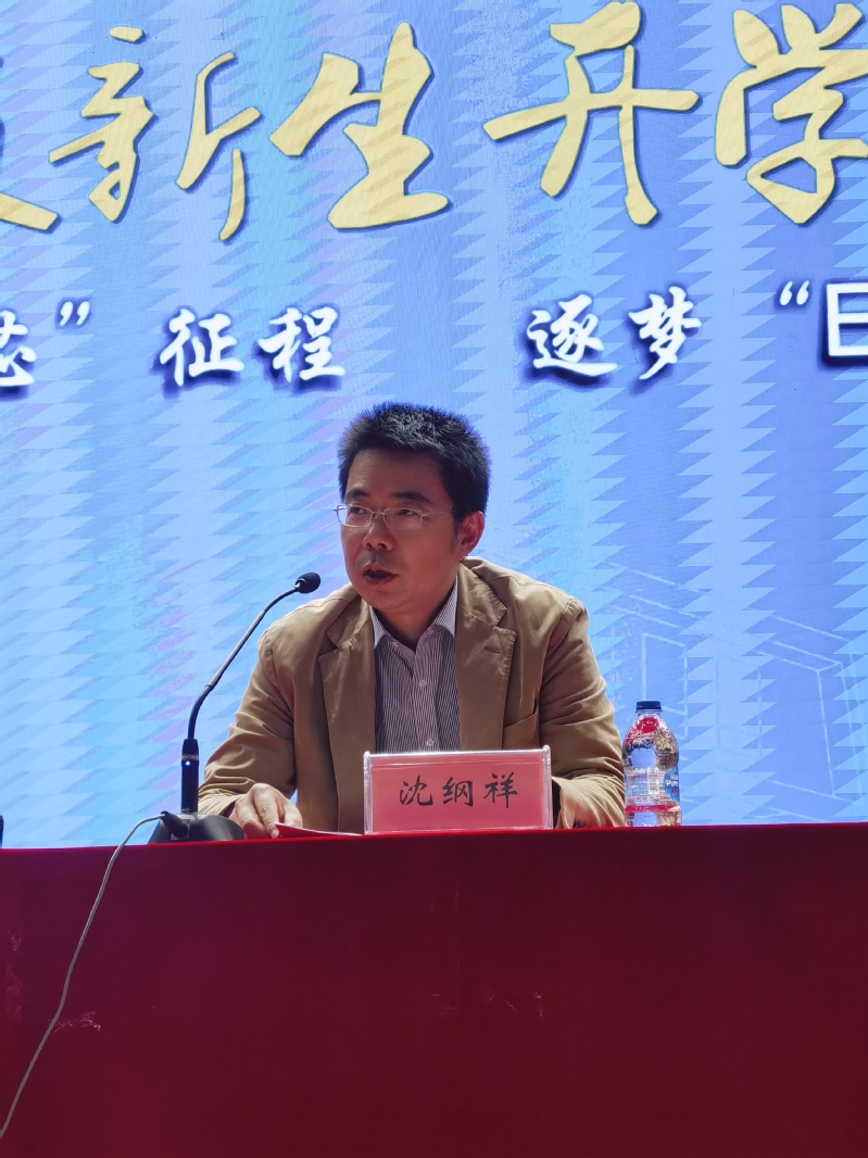 院长沈纲祥教授代表学院向全体2021级新生的到来表示热烈的欢迎。在欢迎和祝福的同时,沈院长也对新生们的学习和生活提出了几点宝贵的建议:一、衡量自己对科研的兴趣与能力,勇于追求专业学习上的提升,通过继续深造,努力成长为国之栋梁。二、要学会自我管理,时刻磨炼自己。特别是要做好人生规划,为自己的将来负责,并不断提高自学、沟通等能力。三、坚持诚实的品质。诚实为立身之本,是学术研究的基本保障,是个人发展的基本要求。沈院长“干货”满满的讲话,还需要新生们在接下来的追梦圆梦的日子里去细细体会。