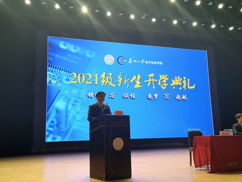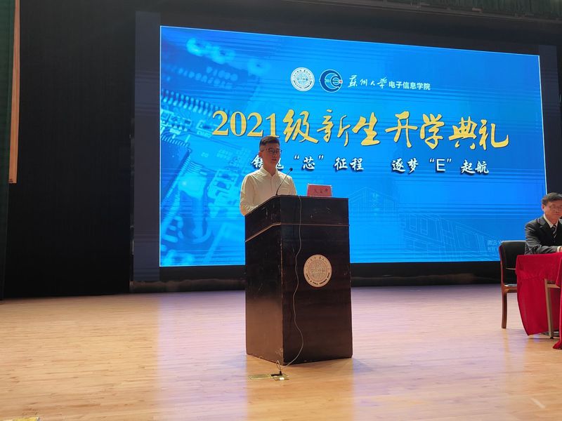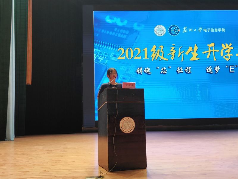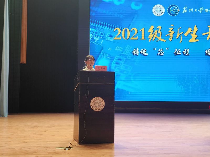 2019级在校本科生周雨晴也作为老生代表分享了她在大学两年的学习成长经历,并建议新生做好学习规划、挖掘学习兴趣,用自己的成长来点缀苏州大学的色彩、续写电院的华章。