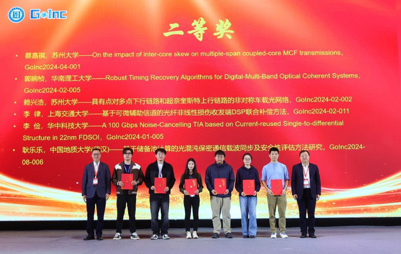 近日,在武汉举行的“第七届光信息与光网络大会(GoInc2024)”上,P站 研究生表现优异,在优秀口头报告评选中荣获多个奖项。经过与其他高校学生的激烈竞争,P站 郭宁宁同学荣获一等奖,蔡嘉祺和赖兴浩两名同学荣获二等奖,另外五名研究生荣获三等奖。