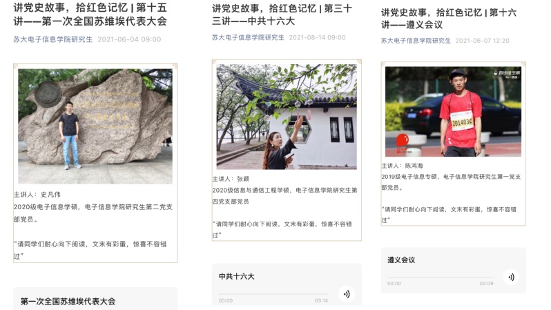成功举办“讲党史故事,拾红色记忆”系列活动,充分利用微信公众号平台,100余位党员作为主讲人,带领全体研究生通过声音与文字的形式回顾了党的百年奋斗历程,其余同学以留言问答的形式积极参与其中,微信推文阅读总量超3万次。
