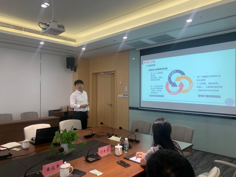 6月14日上午,院长沈纲祥、党委书记袁冬梅及班子全体成员、王明湘教授等一行八人赴未来科学与工程学院交流调研。未来科学与工程学院党委书记吉伟、副院长(主持工作)陈涛、副书记陈贝贝及相关负责人参加交流会。会议由吉伟主持。