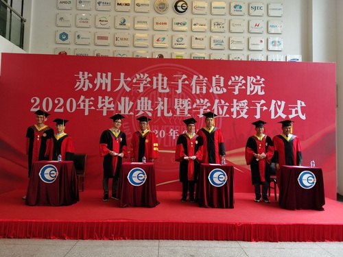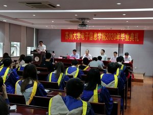 2020年6月28日上午8:30,学院毕业典礼暨学位授予仪式在电子信息楼隆重举行,并在“苏大P站 QQ公众号上”进行同步线上直播。学院领导、各系主任、辅导员、毕业年级班主任及全体2020届毕业生出席。毕业典礼暨学位授予仪式由学院党委副书记、副院长黄远丰老师主持。